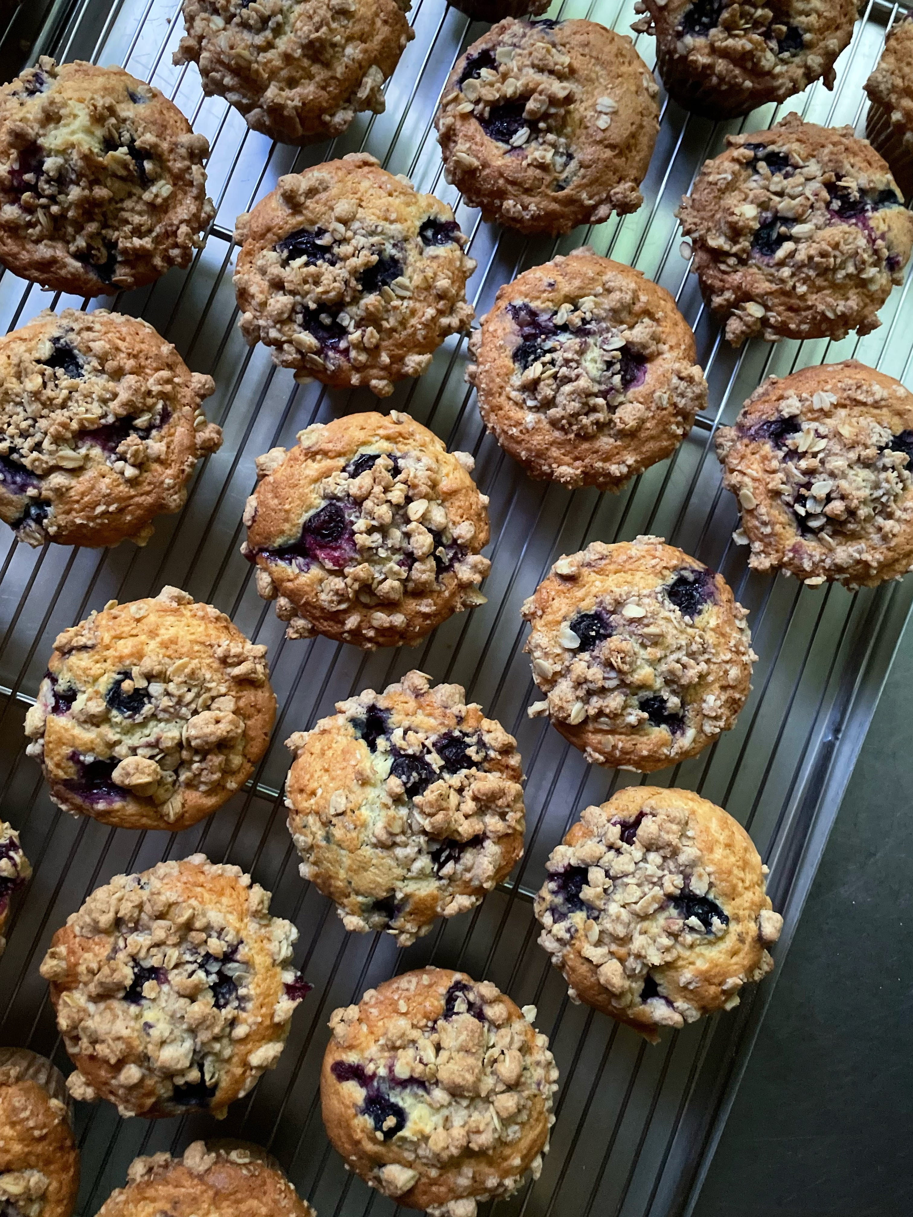 有機小麦粉(北海道産)、有機全粒粉(北海道産)、ベーキングパウダー(アルミニウムフリー)、バター(北海道産)、素焚糖(奄美大島産)、有機粉糖(ブラジル産)、平飼い卵(長野県産)、カンホアの塩(ベトナム産)、牛乳(埼玉県産)、有機オートミール(アメリカ産)、ブルーベリー(根羽村産自然栽培)