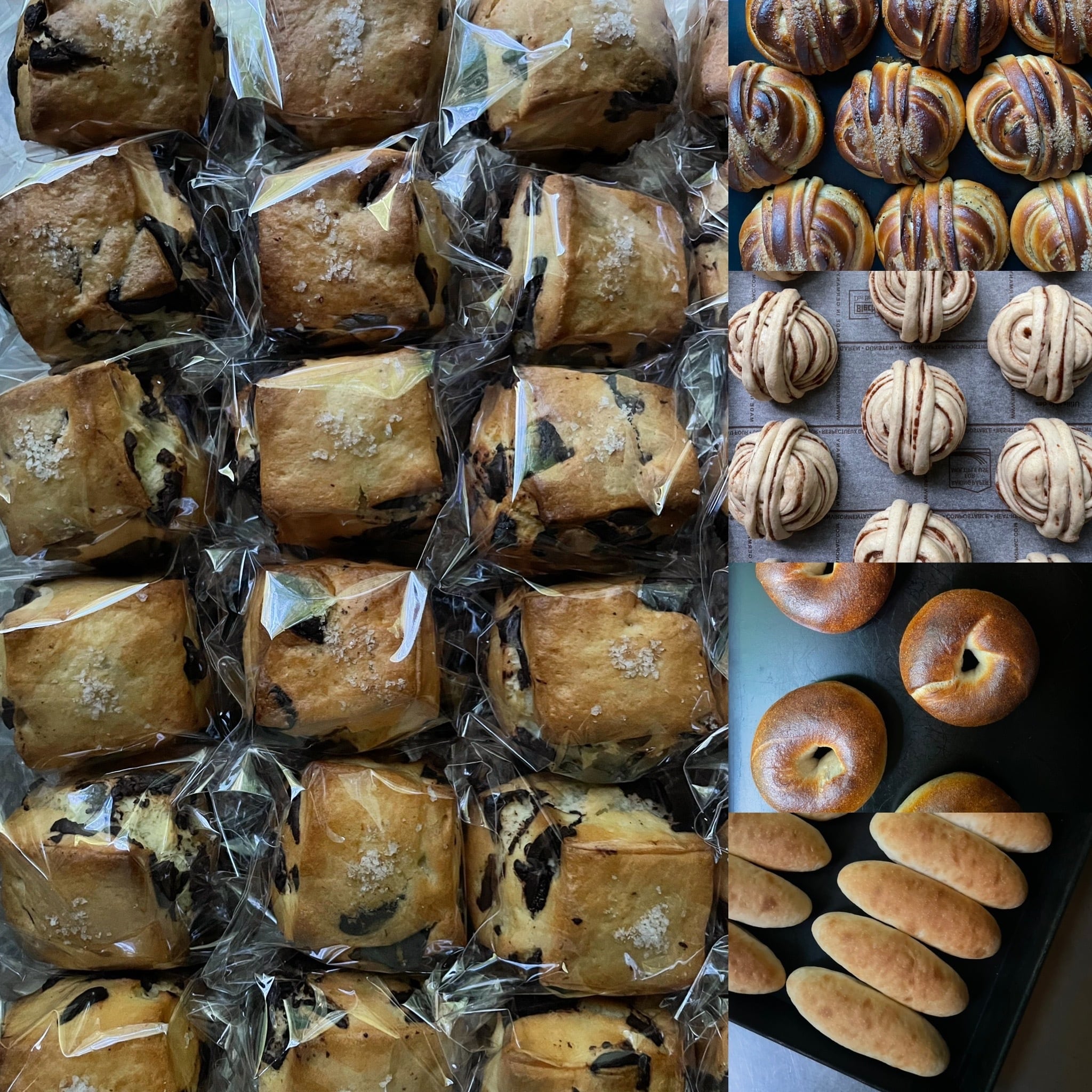 有機小麦粉(北海道産)、有機全粒粉(北海道産)、有機オーツミルク(イタリア産)、バター(北海道産)、喜界島粗糖(鹿児島県産)、ルヴァン種、発酵種、カンホアの塩(ベトナム産)、有機シナモンパウダー(スリランカ産)、有機カルダモンパウダー(スリランカ産)