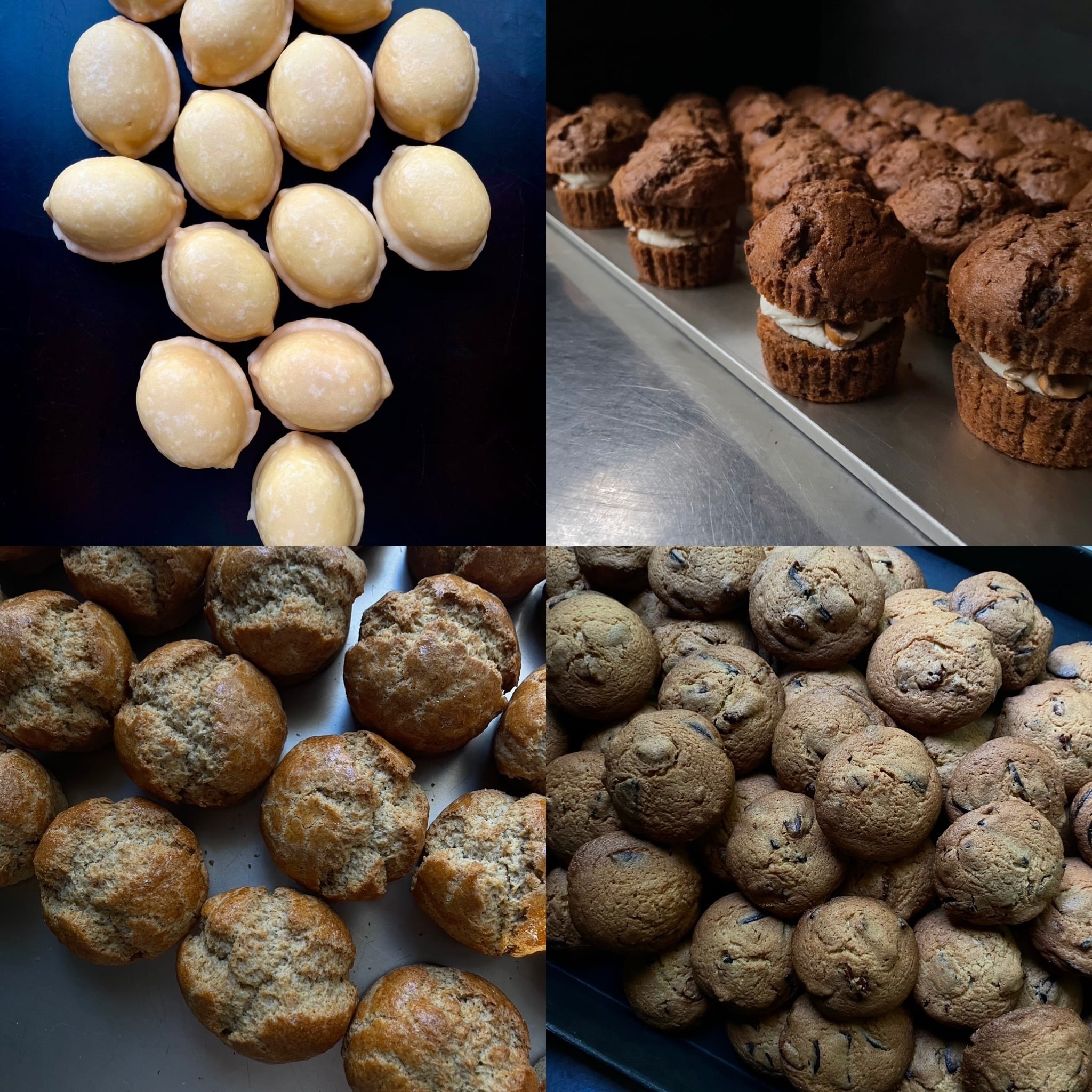 有機小麦粉(北海道産)、有機小麦全粒粉(長野県産)、ベーキングパウダー(アルミニウムフリー)、バター(北海道産)、有機粉糖(ブラジル産)、自然海塩(イタリア産)、平飼い卵(長野県産)、牛乳(北海道産)