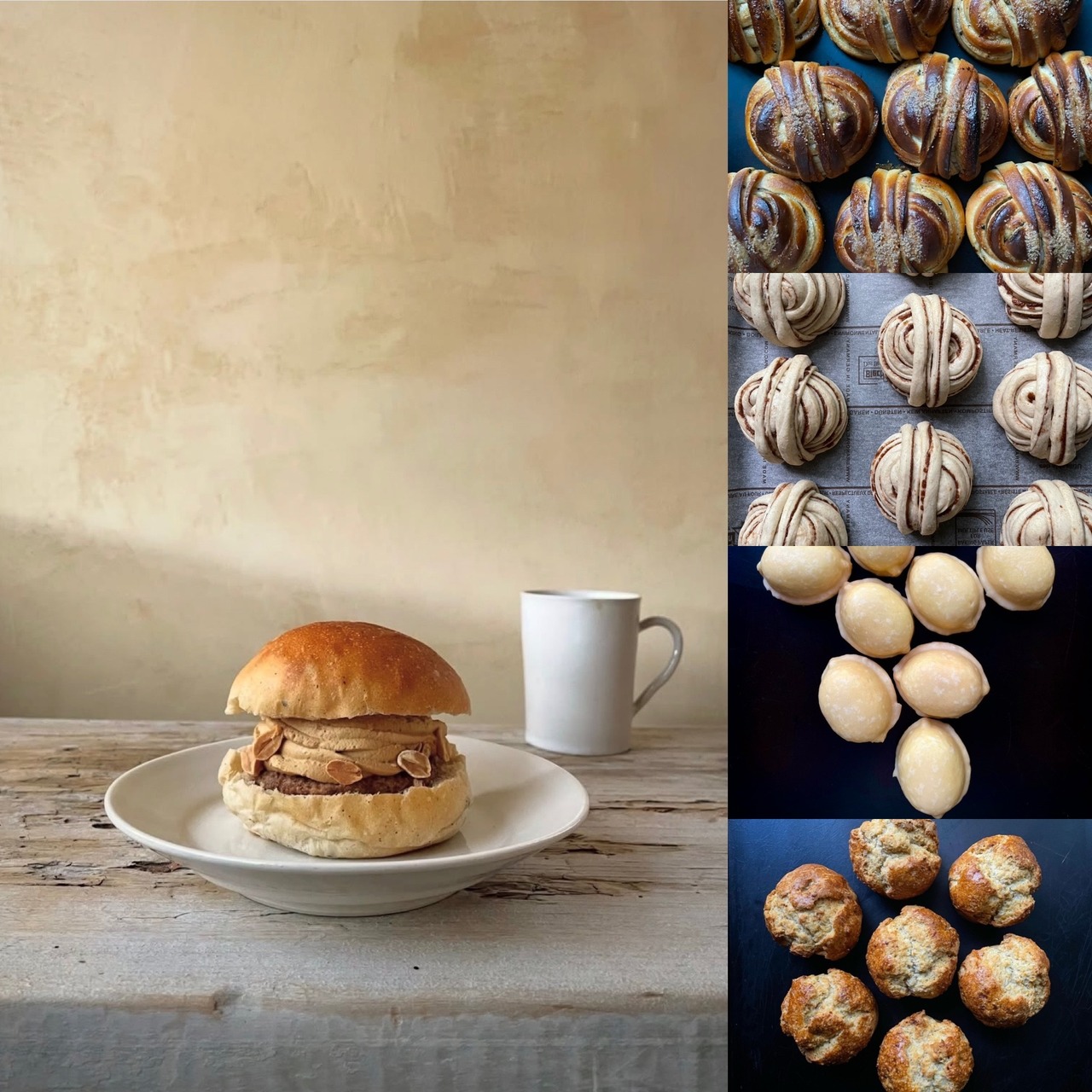 コーヒーセムラは、自家製酵母を使用して薪窯で焼いたカルダモン香るパンにピーナッツバターを混ぜたアーモンドペーストとキャラメルソース、ローストピーナッツ、メキシコ産の有機コーヒー豆を使用して作った少し苦味が効いたコーヒー生クリームを挟みました。